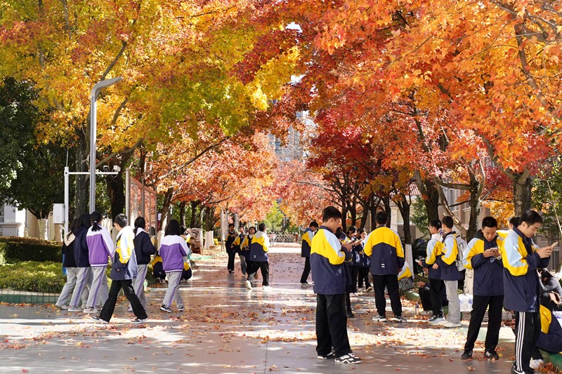初冬的安中校园,满地银杏织就金黄地毯,枫香大道两侧红枫如焰,清冽空气中浮动着悠远的叶香。2025年12月4日至7日,昭通市盐津县第三中学的50名师生跨越山川,走出乌蒙,来到安宁中学教育集团,开展了为期四天的跟岗学习与深度访学。